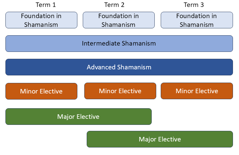 - Intermediate and Advanced Shamanism run through Terms 1–3 and cannot be started in Term 2 or Term 3.